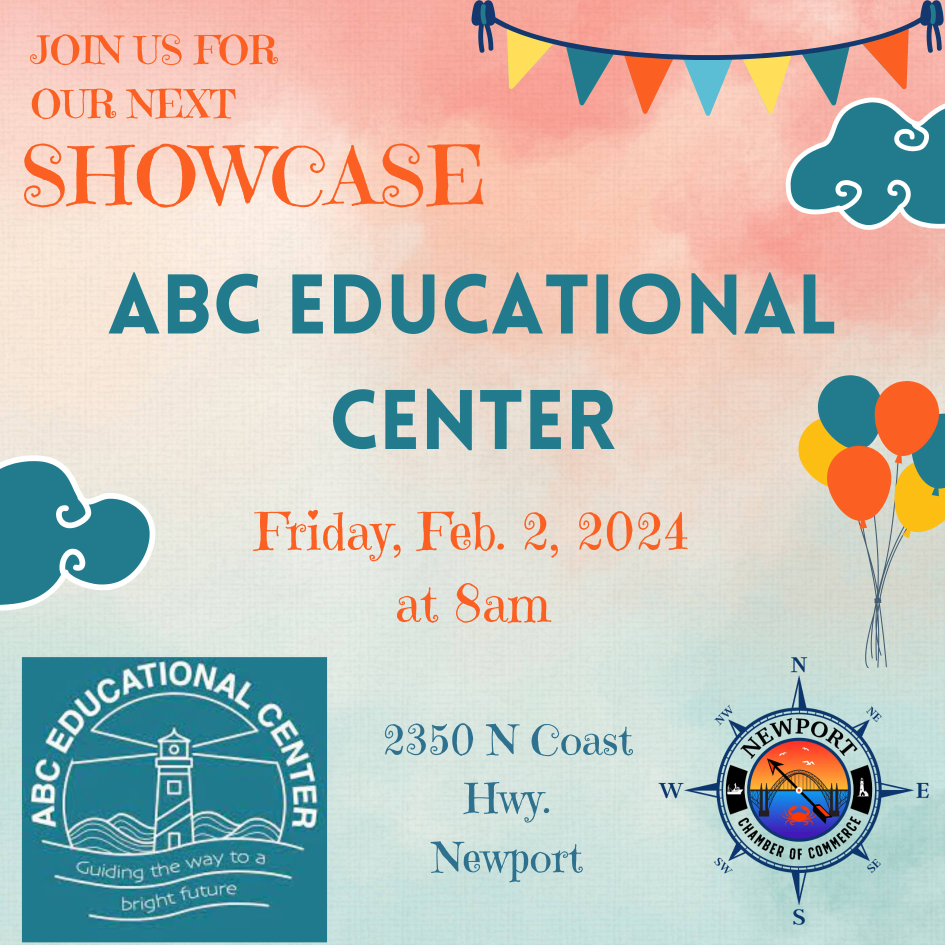 Our next showcase of 2024 is Friday, Feb. 2nd at 8am at ABC Educational Center! Join us as we visit this awesome, family-run local business in Newport! Open to Chamber members, Ambassadors, and the public! :)