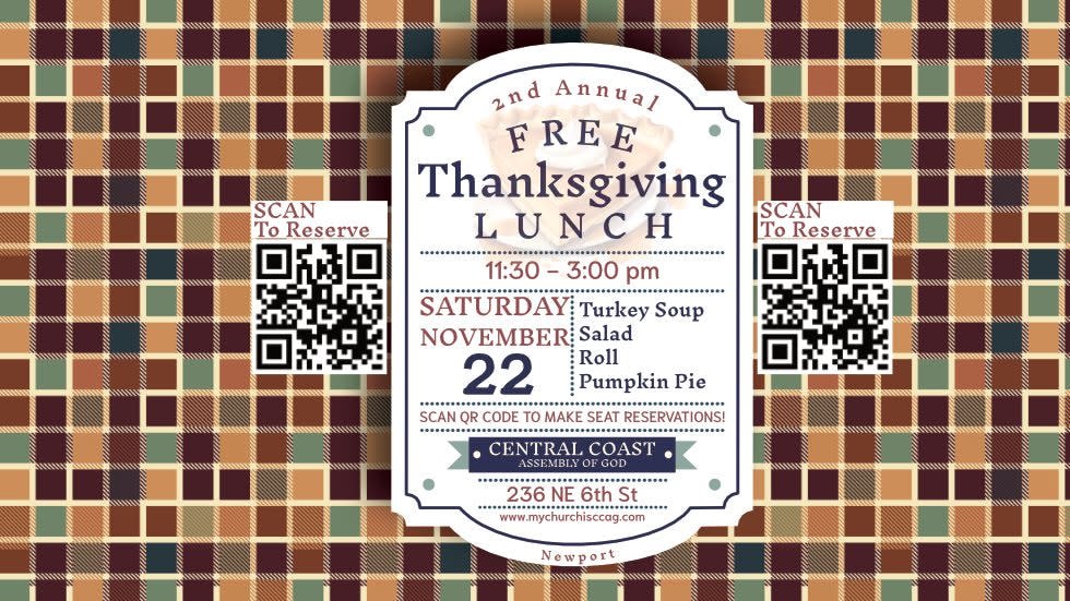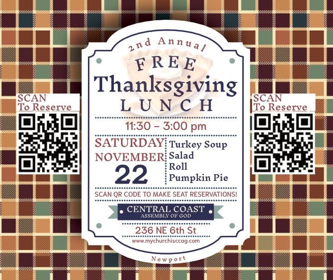 Saturday, November 22 from 11:30am to 3:00pm Central Coast Assembly of God 236 NE 6th St Newport, OR 97365Images