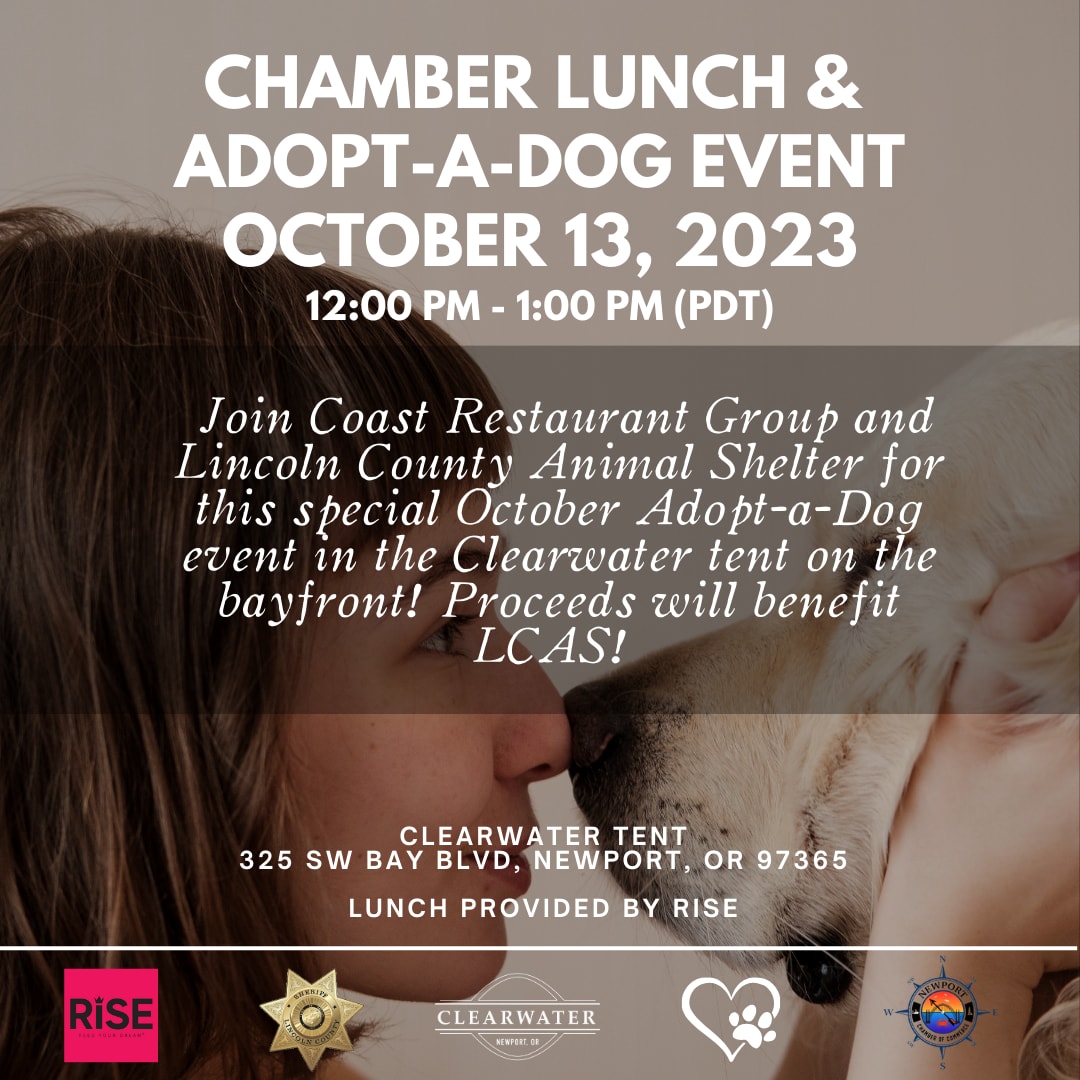 Program: Join Coast Restaurant Group and the Lincoln County Animal Shelter for this special October Adopt-a-Dog lunch/event in the Clearwater tent on the bayfront! Lunch catered by RISE.