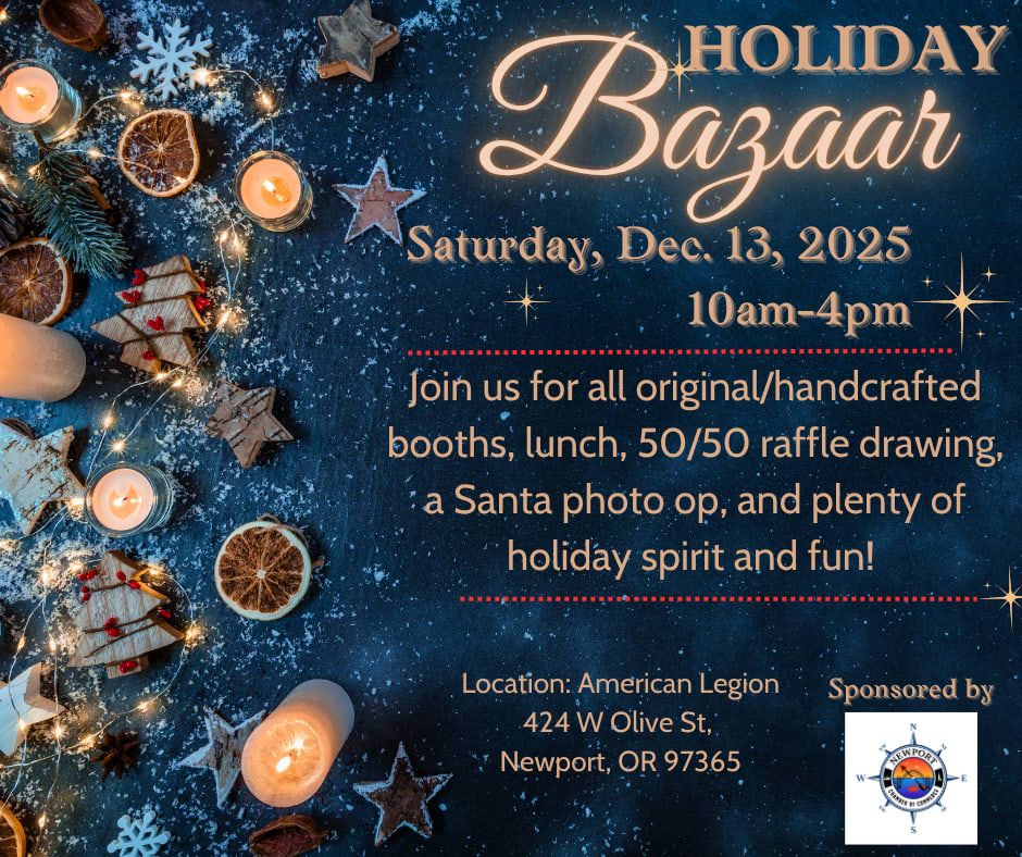 Join us for our annual Holiday Bazaar at the American Legion. There will be lots of fantastic vendors ready to help. We look forward to seeing you there.